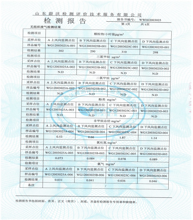 3、檢測結果:廠區無組織各汙染物濃度均滿足《大氣汙染物綜合排放標(biāo)準》及《石油化(huà)學工業汙染物排放標準》,檢測達標。